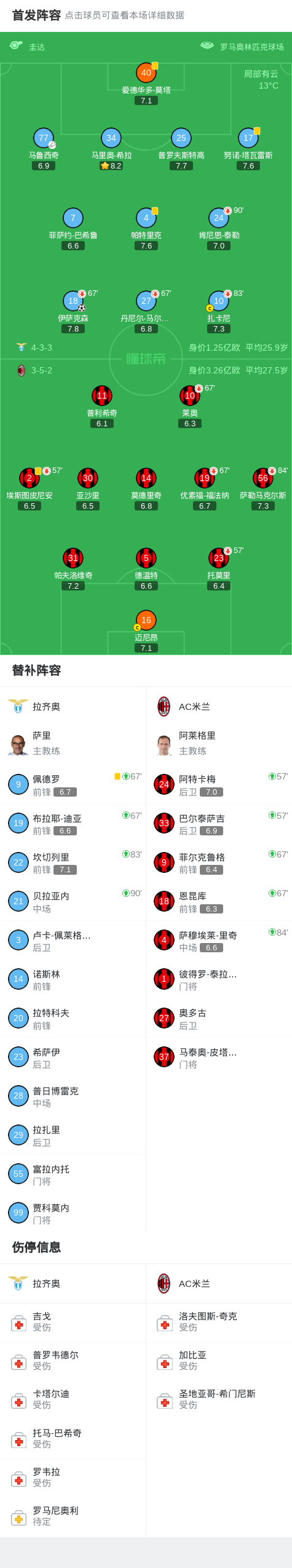 北京时间3月16日意大利足球甲级联赛第29轮,拉齐奥主场对阵AC米兰。上半场伊萨克森破门,泰勒中框,下半场普利希奇造险,阿特卡梅破门被吹手球,萨里补时染红最终比分拉齐奥1-0 AC米兰。